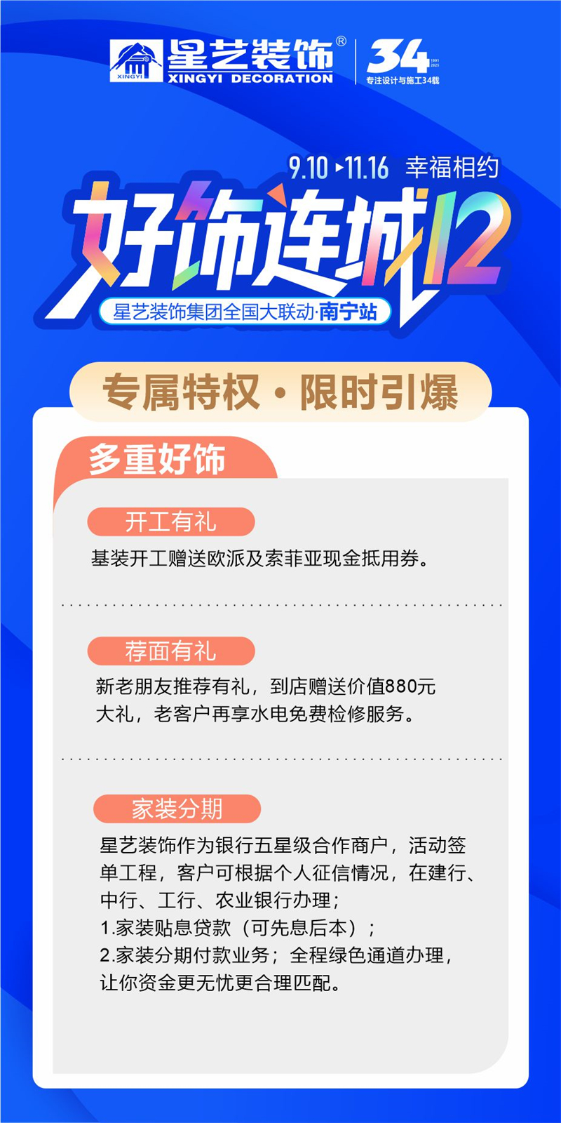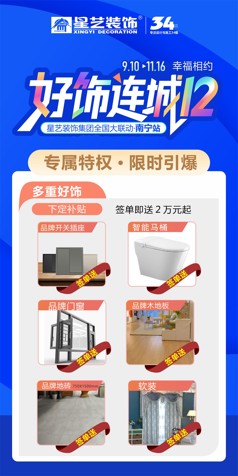 家人們!是不是正在為裝修發(fā)愁?怕裝修公司跑路?擔心材料被掉包?售后找不到人?別擔心!星藝裝飾好飾連城12(南寧站)來了!給您吃下定心丸!
