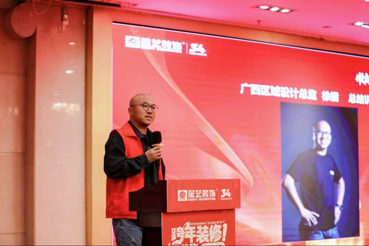 最后,星藝廣西設計總監(jiān)徐橘作會議總結,徐總對此次啟動會培訓效果表示肯定,同時鼓勵星藝各個部門的家人們與時俱進,創(chuàng)新思維,開拓新賽道,提高服務品質,用心服務每位業(yè)主。